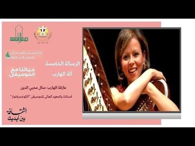 واليوم هو خامس فعاليات السلسة مع عازفة الهارب منال محيي الدين مصر، أستاذة بالمعهد العالي للموسيقى "الكونسرفتوار" والذي تتحدث فيها عن "آلة الهارب"، في تمام الساعة السابعة مساء السبت 10 أكتوبر الحالي.