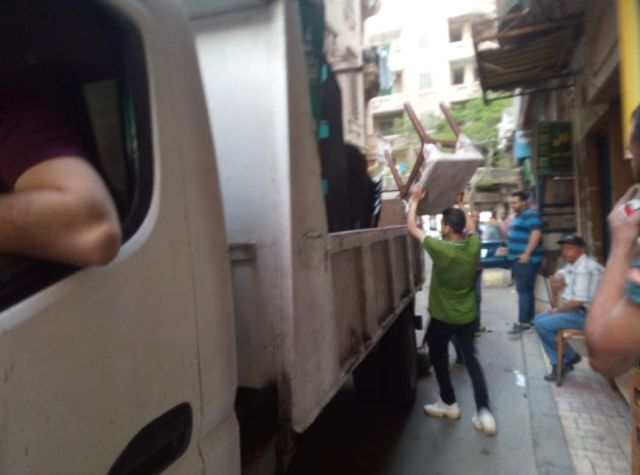 نظم حي وسط الإسكندرية حملتين لازالة الاشغالات واللافتات المخالفة من شوارع حي وسط