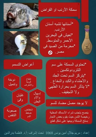 وأضاف المركز أنه عند تناول سمك الأرنب يجب أن يتم إزالة الجلد والبطن وخاصة البطارخ ، بسبب زيادة نسبة السمية القاتلة بها.