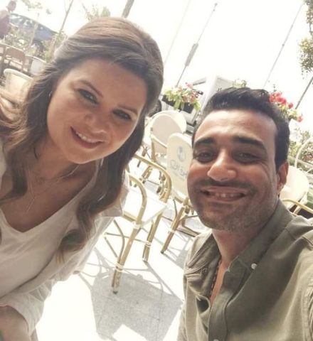 «محمد درويش» يشارك بصورة تجمعه بيسرا اللوزي بطلة بالورقة والقلم