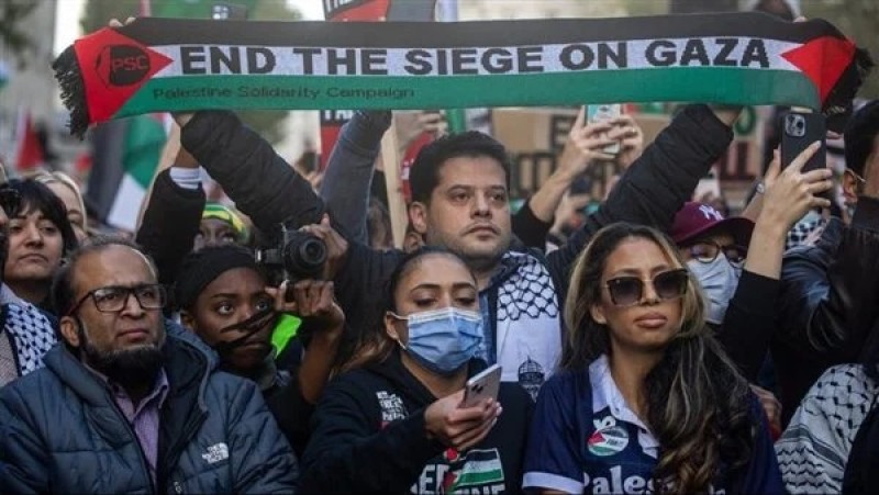 وقال المنظمون لمجموعة عمل فلسطين، إن حوالي 5000 شخص كانوا حاضرين.