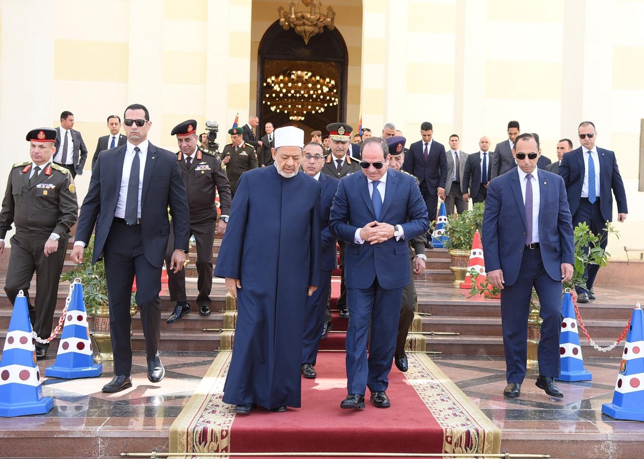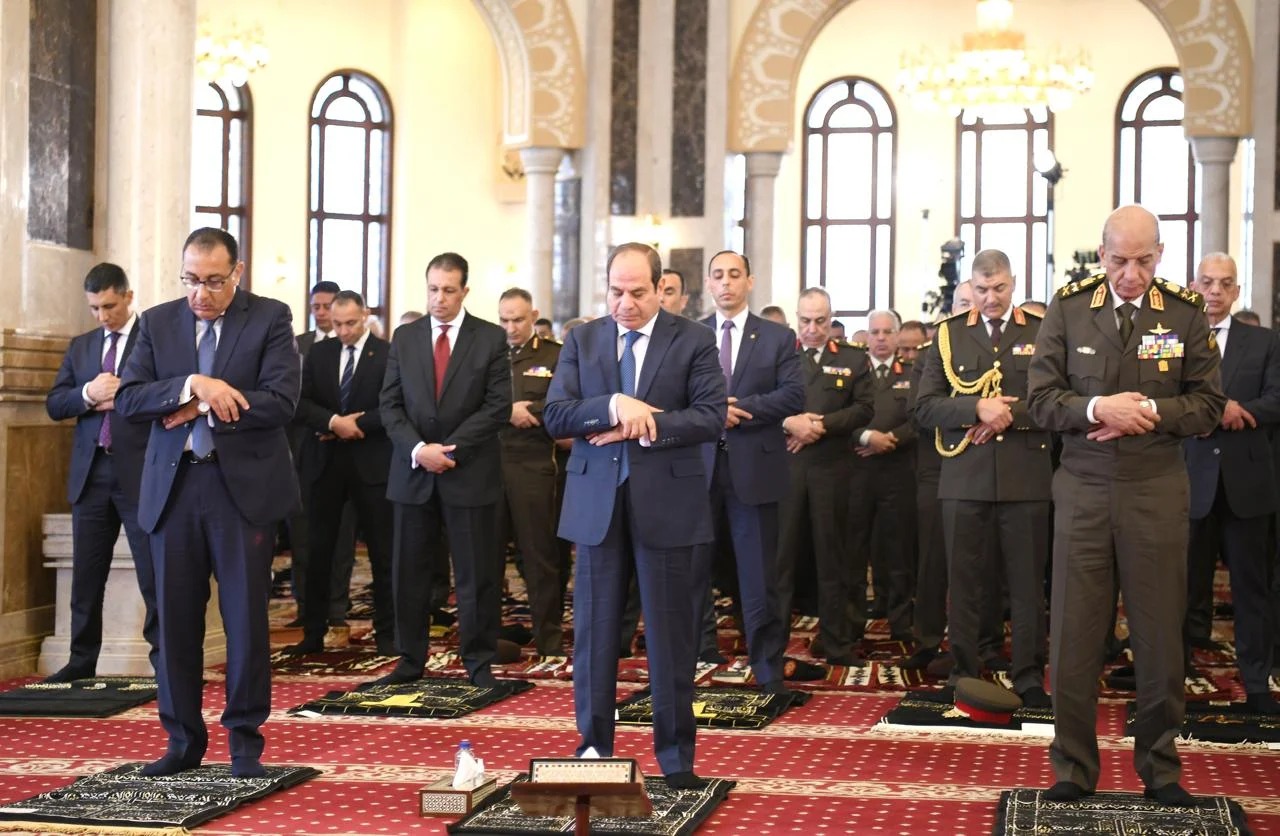 متحدث الرئاسة ينشر صور السيسي أثناء صلاة الجمعة في مسجد المشير