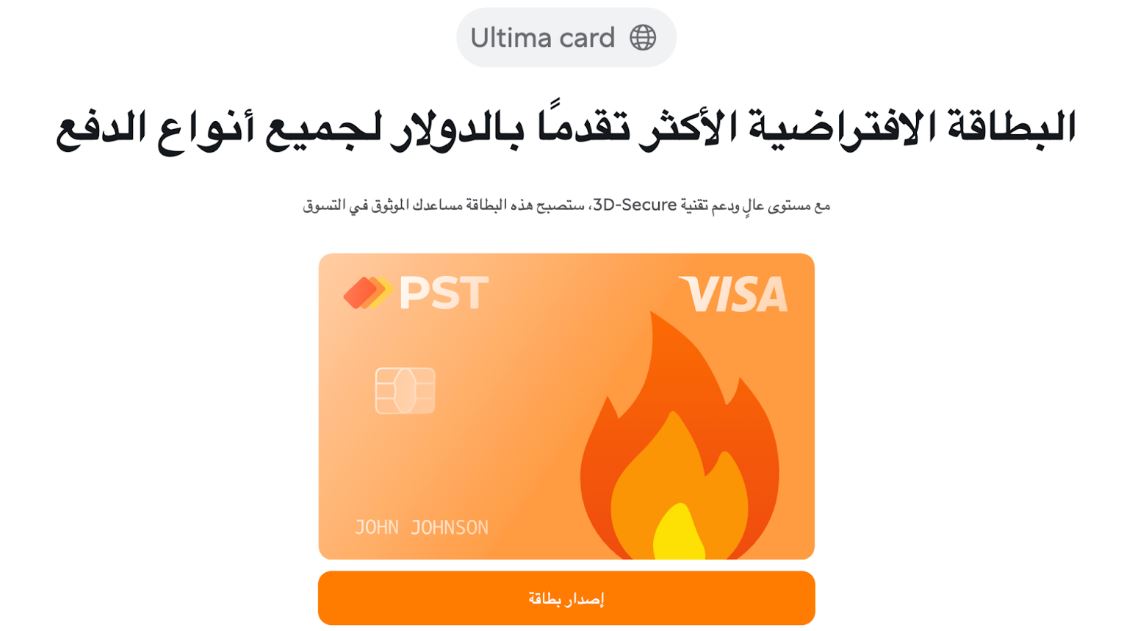 خدمة PSTNET تصدر بطاقات افتراضية تحت علامة Ultima. هذه البطاقات مناسبة لدفع الاشتراكات الدولية والخدمات مثل PayPal وChatGPT وحجوزات السكن وتأجير السيارات وVPN والتخزين السحابي والوصول إلى الشبكات العصبية.بطاقة Ultima بلا قيود على النفقات أو التعبئة. يمكن استخدامها في أي عملية تقبل Visa أو Mastercard. لا توجد عمولات على المعاملات أو المرتجعات أو العمليات المرفوضة. العمولة الوحيدة هي التعبئة بنسبة 2% لكن الإيداع الأول بعملة USDT مجاني من العمولة، مما يجعلها واحدة من أفضل البطاقات الافتراضية بالدولار للاستخدام اليومي والدفع عبر الإنترنت.