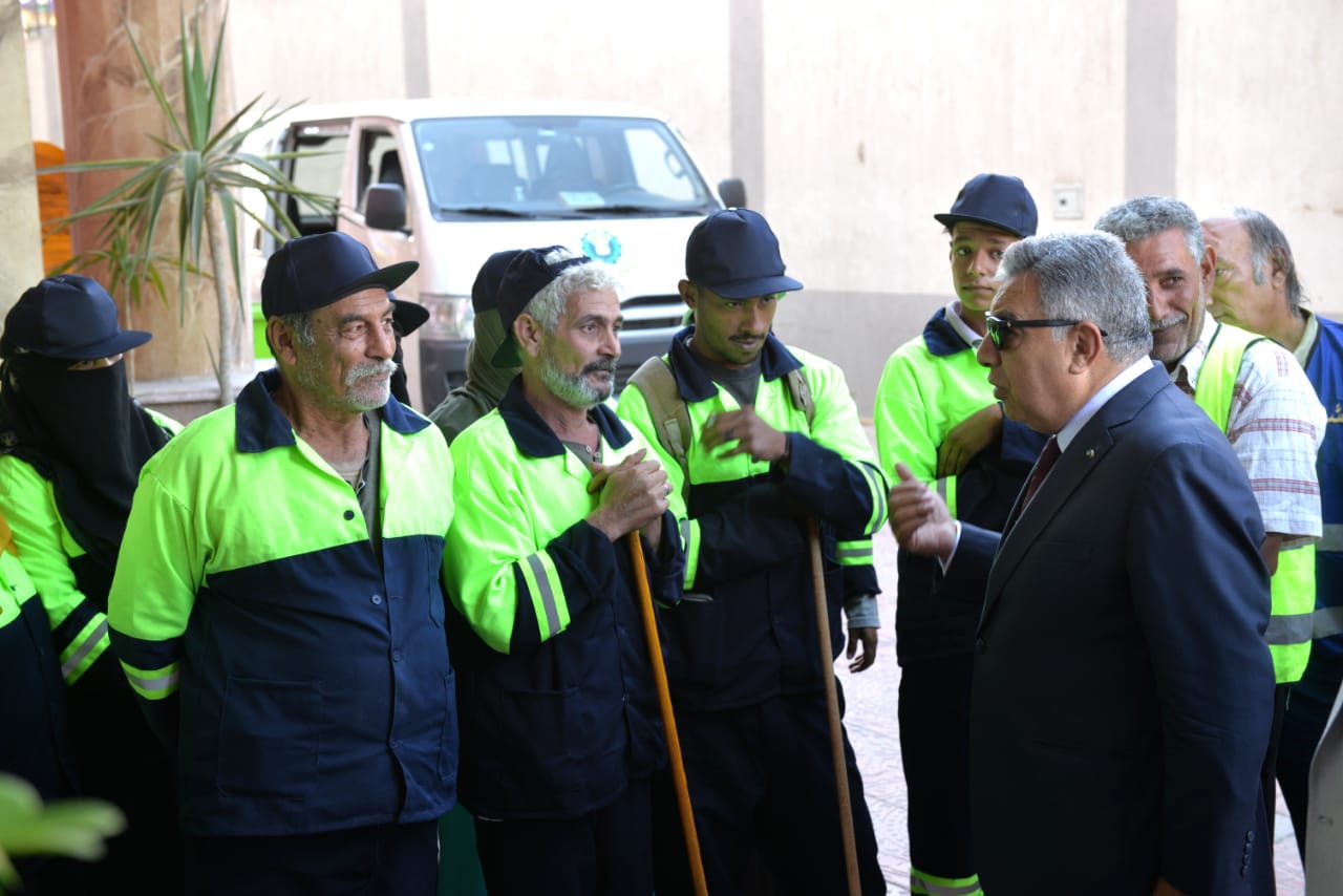 المحافظ يلتقي عمال شركة النظافة الجديدة لدعم منظومة النظافة بحي غرب المنصورة