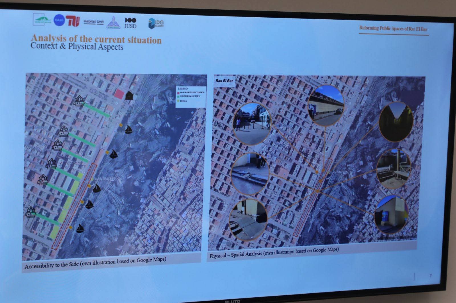 وجاء اللقاء بحضور الأستاذ الدكتور عمرو حنفى مستشار محافظ دمياط لنظم المعلومات المكانية والمتحدث الرسمي للمحافظة، حيث يأتى فى إطار عمل الفريق لإعداد دراسة لتطوير منطقة السوق الحضارى بكورنيش النيل بمدينة رأس البر، وذلك فى إطار مادة التخطيط والتصميم العملى PDP لجامعة عين شمس و برنامج ماجستير العمران المتكامل والتصميم المستدام لجامعة برلين التقنية قسم العمران الدولى والتصميم من خلال مشروع " نحو مدن مصرية خضراء " الممول من الهيئة الألمانية للتبادل الأكاديمي DAAD.