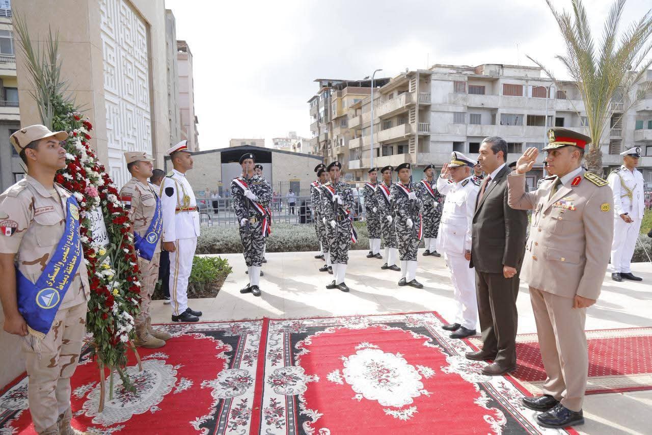 محافظ دمياط يضع إكليل الزهور على النصب التذكارى للشهداء .. إحتفالاً بالذكرى الثانية والخمسين لانتصارات أكتوبر المجيدة