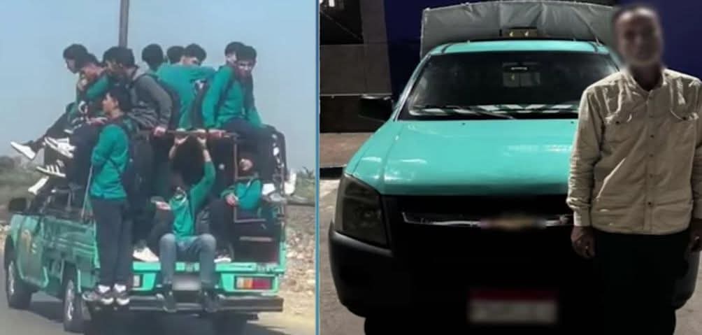 ضبـط ”نصف نقل” بها طلاب بالصندوق معرضاً حياتهم والمواطنين للخطـر