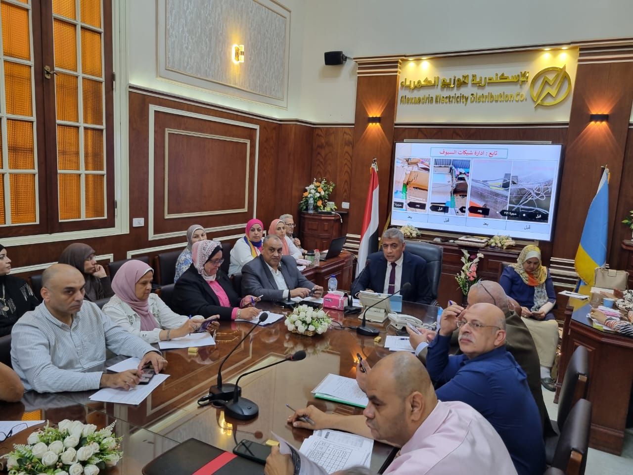وشارك في الاجتماع المهندس محمد فتح الباب رئيس قطاعات التشغيل والمهندسة إيمان يونس رئيس قطاعات شبكات التوزيع والمحاسب محمد غنيم رئيس قطاعات الشئون المالية والموارد البشرية والمحاسب محمد الجمل رئيس قطاعات الشئون التجارية.