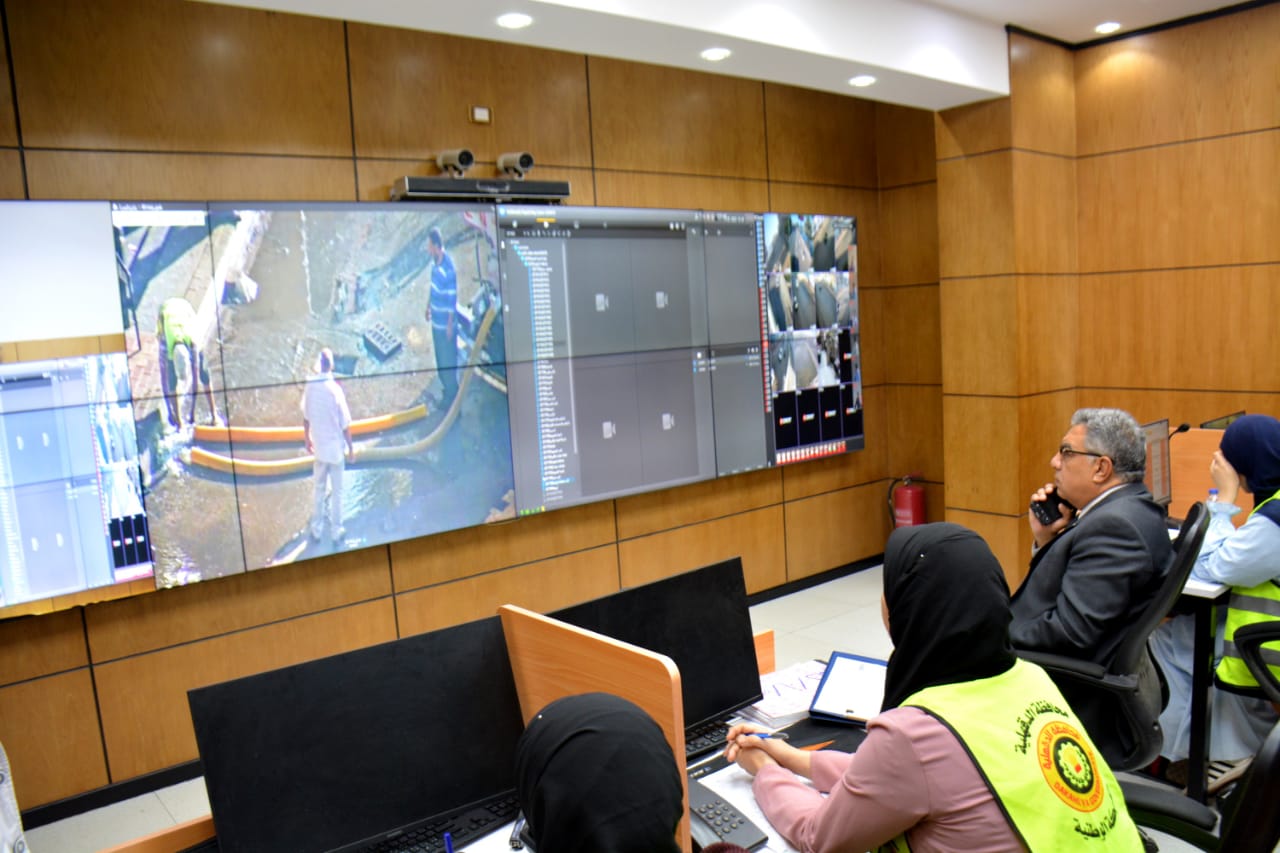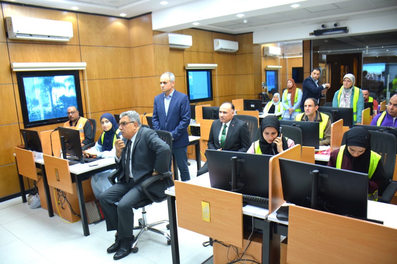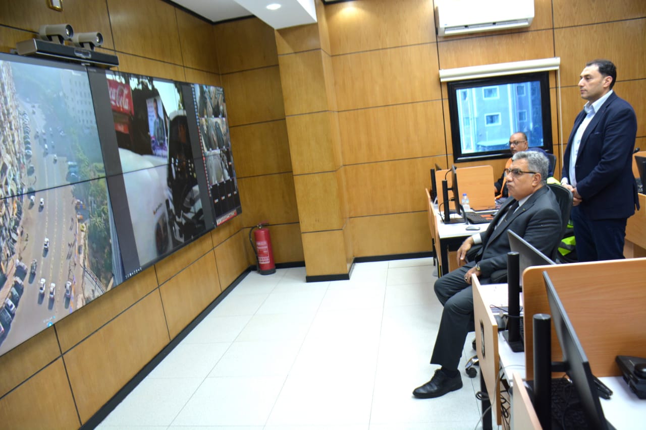 المحافظ يتابع من مركز سيطرة الشبكة الوطنية محاكاة التعامل مع مياه الأمطار وحركة المواقف ومستوى النظافة بمدينة المنصورة