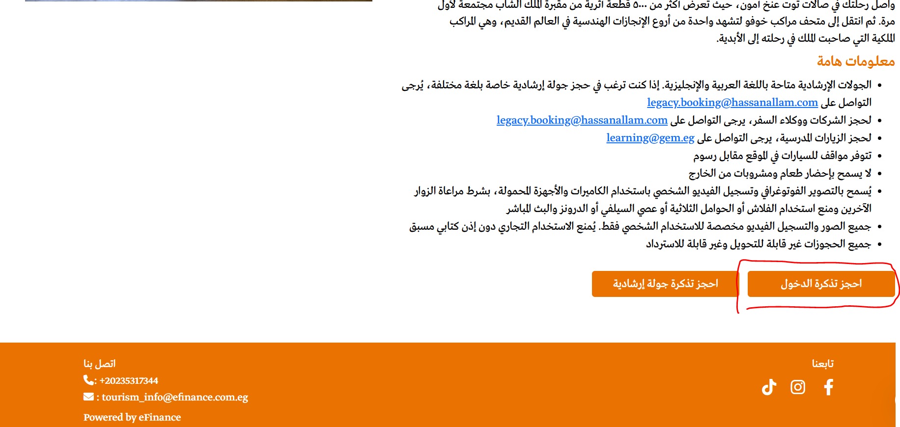 - بمجرد الدخول إلى الموقع المذكور أعلاه، انقر على خيار “احجز تذكرة الدخول”