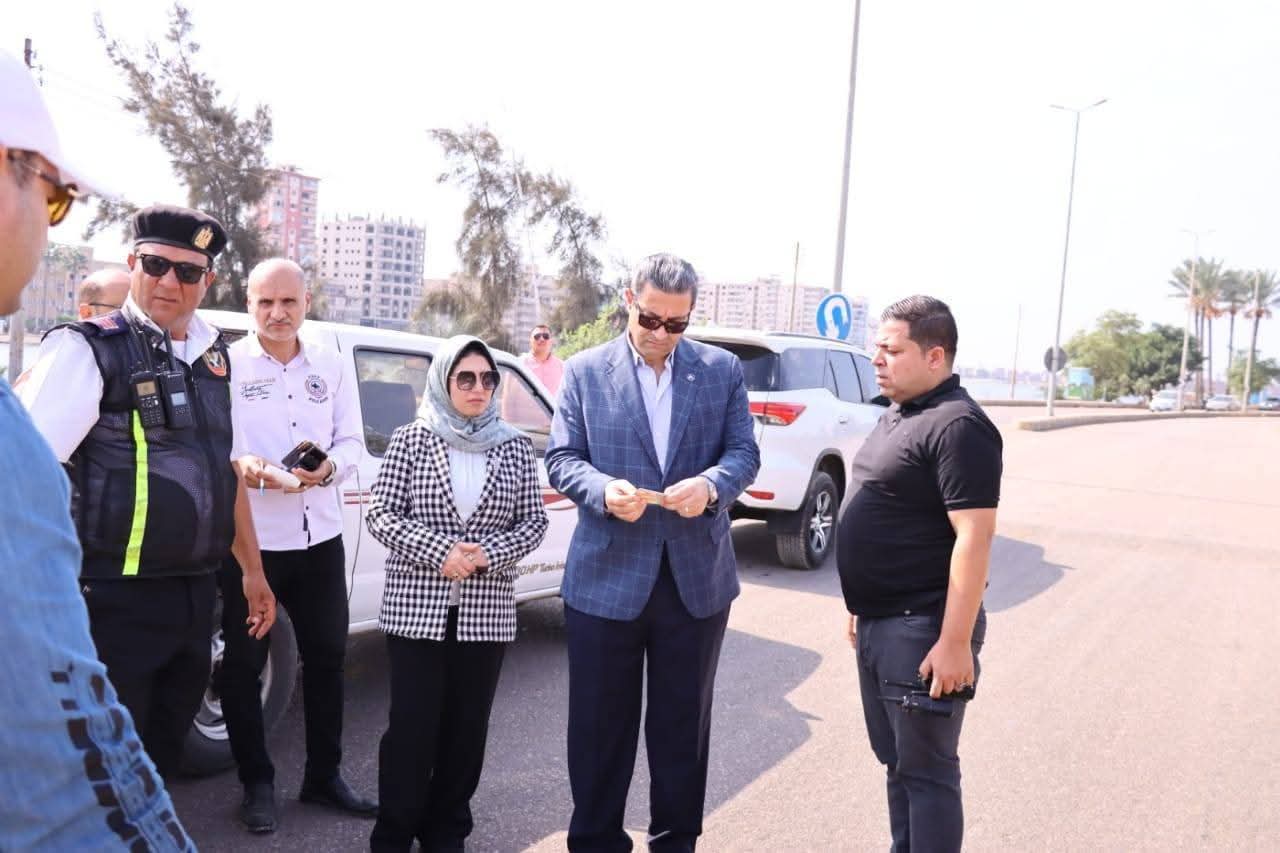 محافظ دمياط يستوقف سيارة تسير عكس الاتجاه ويسحب الرخص فورا