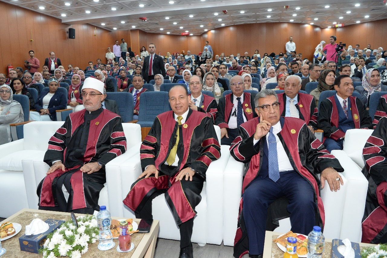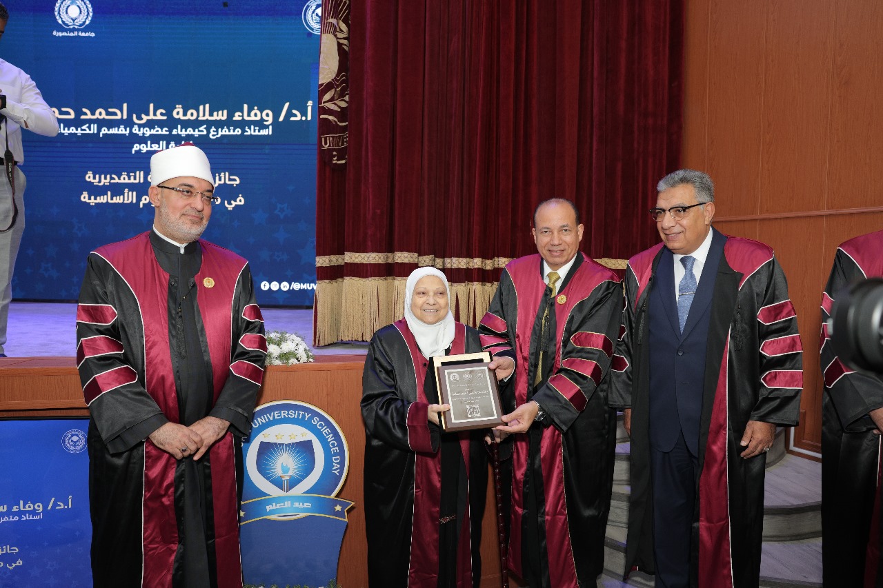 جامعة المنصورة تحتفل بالعيد السادس عشر للعلم وتكرّم علمـاءها بحضور مفتي الجمهورية والمحافظ