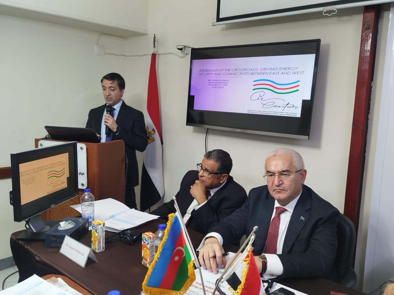 كما قدم شاهمار هاجييف - رئيس قسم في مركز تحليل العلاقات الدولية بعنوان " جيوبوليتك الطاقة والاستراتيجية الأذرية"، في حين قدمت لاله خليل زاده - مستشار رئيس في مركز تحليل العلاقات الدولية ورقة عمل بعنوان "أذربيجان-مصر: مرحلة جديدة من العلاقات الثنائية و آفاق التعاون ".