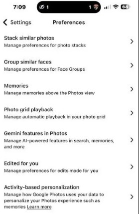- ادخل إلى الإعدادات > التفضيلات، وإذا وجدت خيار Group similar photos قم بتفعيله.