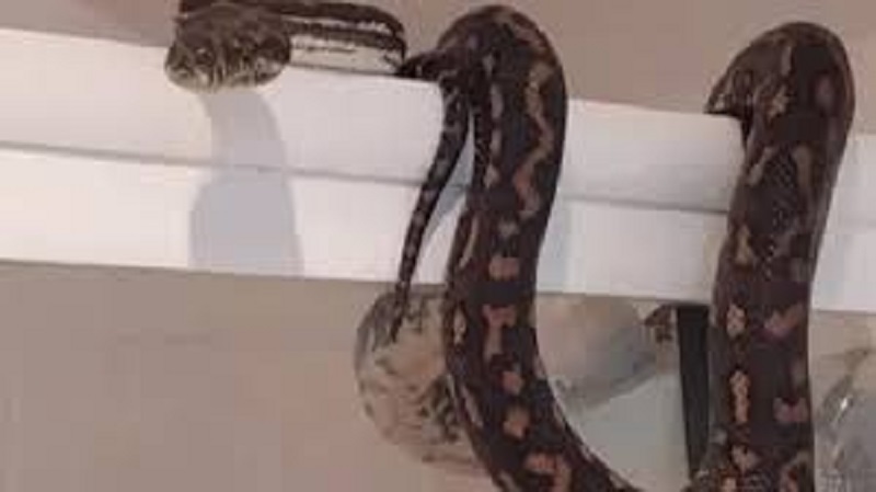 ثعبان ضخم يزن 55 كيلو يقتحم سقف منزل في ماليزيا