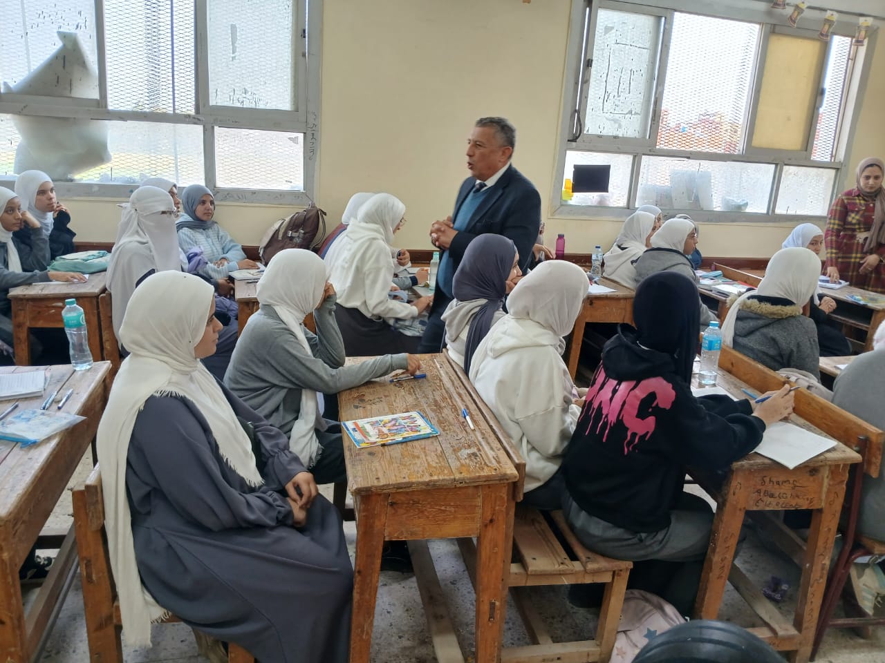 حيث قام بتفقد المدرسة ومرافقها والفصول الدراسية وتابع إنتظام حضور الطلاب وتحقيق الإنضباط الإدارى والتعليمى وتفعيل القرارات الوزارية والكتب الدورية الخاصة بكثافة الفصول كما تابع نظافة المدرسة والساحات بما يضمن بيئة تعليمية آمنة وصحية محفزة لأبنائنا الطلاب