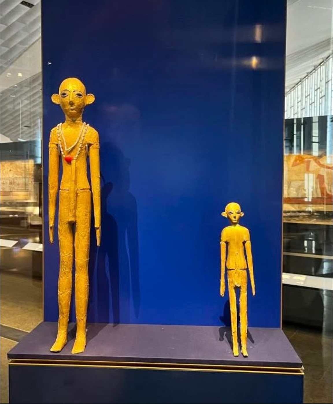 كما توجه المشاركون لزيارة تمثالي تل الفرخة اللذين تم اكتشافهما بمحافظة الدقهلية، وتُعد هذه التماثيل من أندر القطع الأثرية، حيث إنهما من أقدم التماثيل الخشبية المذهبة المكتشفة في مصر، كما شاهد أفراد الرحلة، المجموعة الجنائزية للملك، بما في ذلك تابوته وقناعه الذهبيين.