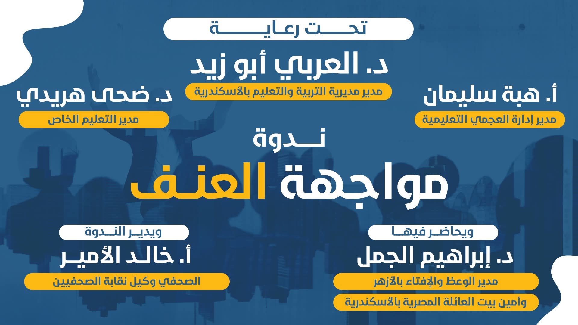 حاضر فيها الدكتور إبراهيم الجمل مدير عام الوعظ و الافتاء بالأزهر الشريف و امين بيت العائلة المصري، وادارها الكاتب الصحفي خالد الأمير وكيل نقابة الصحفيين بالإسكندرية.