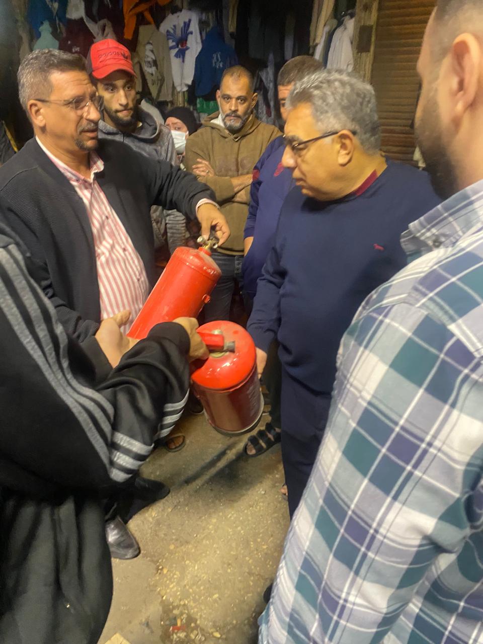 تفقد المحافظ ”سوق الخواجات” بعد حريق المنصورة ويشدد على إجراءات السلامة