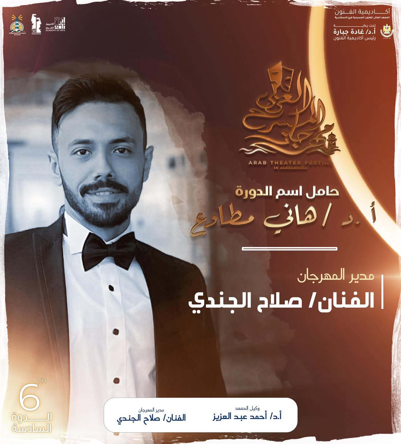 يشهد مسرح النهار في السابعة من مساء اليوم حفل افتتاح الدورة السادسة من مهرجان المسرح العربى " دورة الدكتور هاني مطاوع "، وينظم المهرجان المعهد العالى للفنون المسرحية بالإسكندرية تحت رعاية الدكتورة غادة جبارة رئيس أكاديمية الفنون، وإدارة الفنان صلاح الجندي مدير المهرجان، والفنان مصطفي عامر رئيس اتحاد الطلاب، وتحتضن محافظة القاهرة فعاليات المهرجان، فى الفترة من 13 إلى 18 ديسمبر الجاري.
