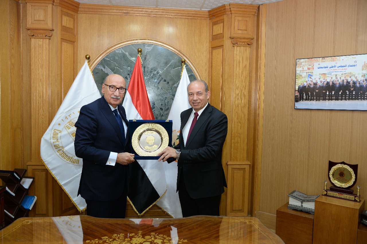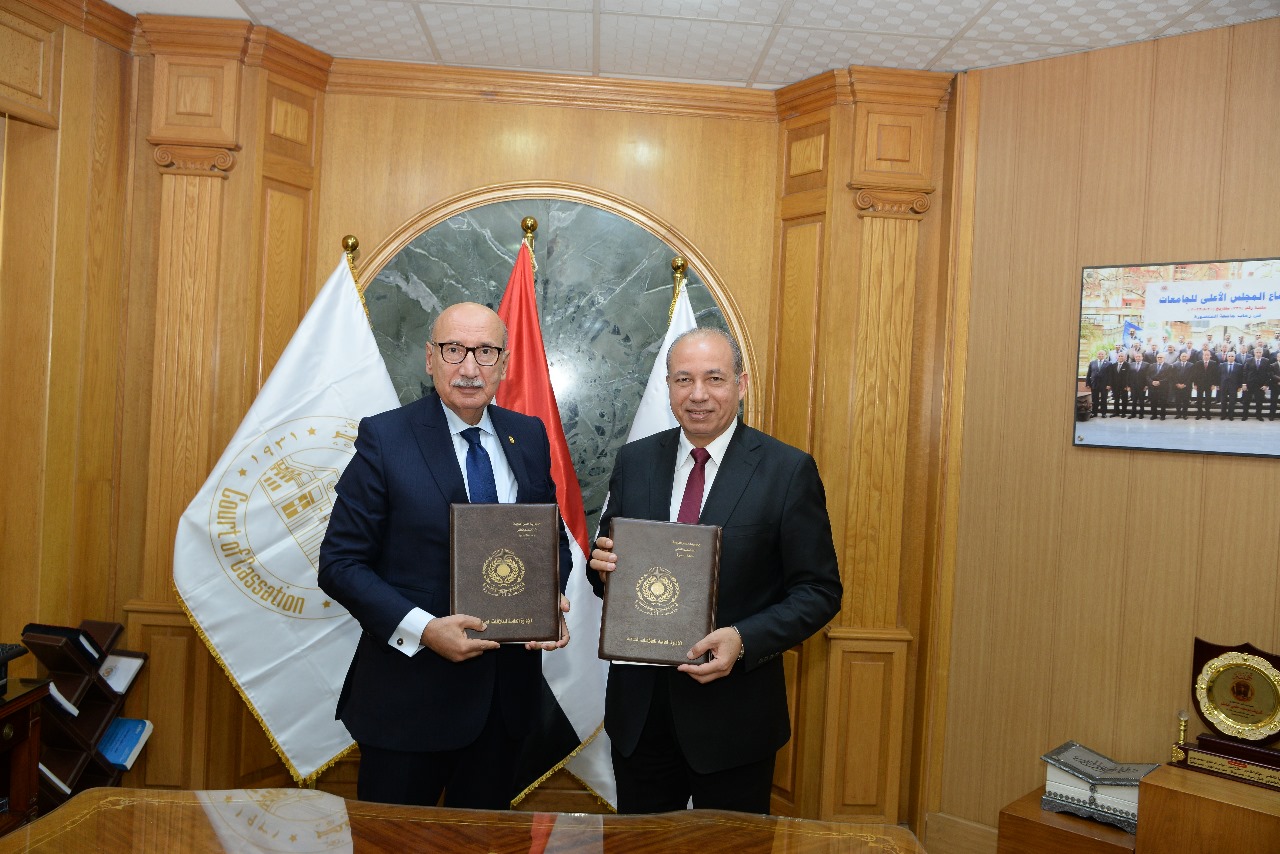 رئيس جامعة المنصورة ورئيس محكمة النقض رئيس مجلس القضاء الأعلى يوقعان مذكرة تفاهم لتعزيز التعاون في مجالات التدريب والتثقيف القانوني