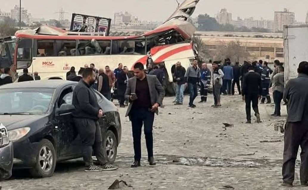 اصطدم أتوبيس بعشر سيارات ملاكي في مشهد مأساوي ..أعلى الطريق السياحي اتجاه المنيب بالجيزة ما أدى إلى إصابات بين الركاب ..