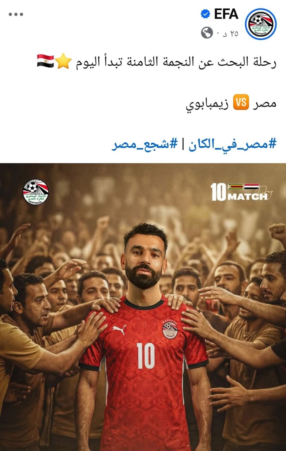وكتب الحساب الرسمي لــ اتحاد الكرة عبر فيسبوك:"رحلة البحث عن النجمة الثامنة تبدأ اليوم مصر.. أمان زيمبابوي