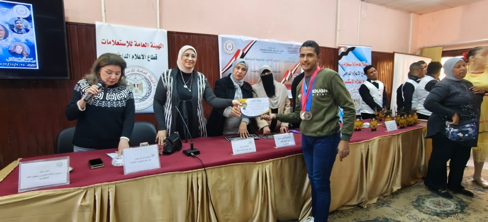 نظم مجمع إعلام الإسكندرية التابع للهيئة العامة للاستعلامات بالتعاون مع مديرية الشئون الصحية بالاسكندرية احتفالية بمناسبة اليوم العالمي للإعاقه بعنوان "المسئولية المجتمعية نحو ذوي الاعاقة "وذلك في إطار حملة قطاع الاعلام الداخلي برئاسةالدكتورأحمديحيى"العمل الأهلي ..الضلع الثالث للتنمية الشاملة ، بحضور الدكتورة فايزة زايد وكيل وزارة التضامن الاجتماعي والدكتورة نجلاء صبره مدير ادارة الخدمة الاجتماعية وخدمة المواطنين بمديرية الشئون الصحية بالاسكندرية والدكتور ابراهيم الجمل مدير عام وعظ الازهر الشريف ورئيس لجنة الفتوي والنائبة ندا ثابت رئيس مجلس ادارة جمعية قرية الامل لذوي الاعاقه والاعلامية علا عبد العزيز كبير مذيعين بتلفزيون الإسكندرية، بمشاركة أسر متحدي الإعاقة بمشاريع التأهيل المرتكز علي المجتمع بإدارة الخدمة الإجتماعية بمديرية الصحة .