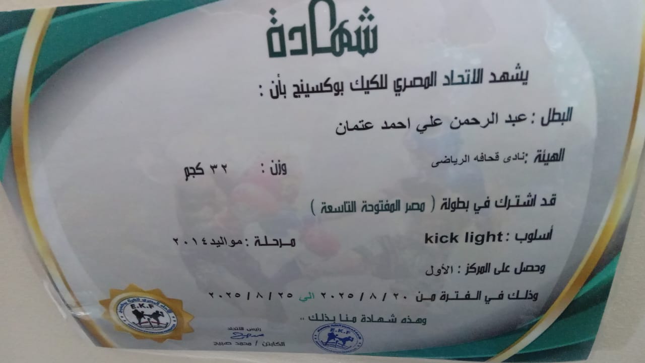 حين يتكلم الإنجاز بصوت طفل.. عبد الرحمن بطل العام في الكيك بوكسينج