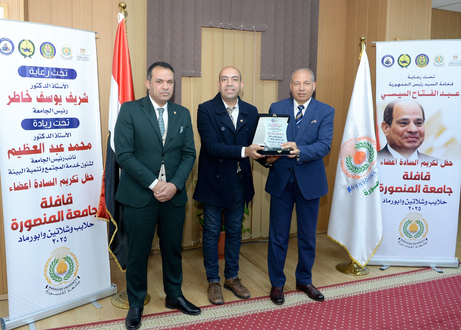 رئيس جامعة المنصورة يُكرِّم أعضاء قافلة ”جسور الخير 23” تقديرًا لعطائهم في حلايب وشلاتين وأبو رماد