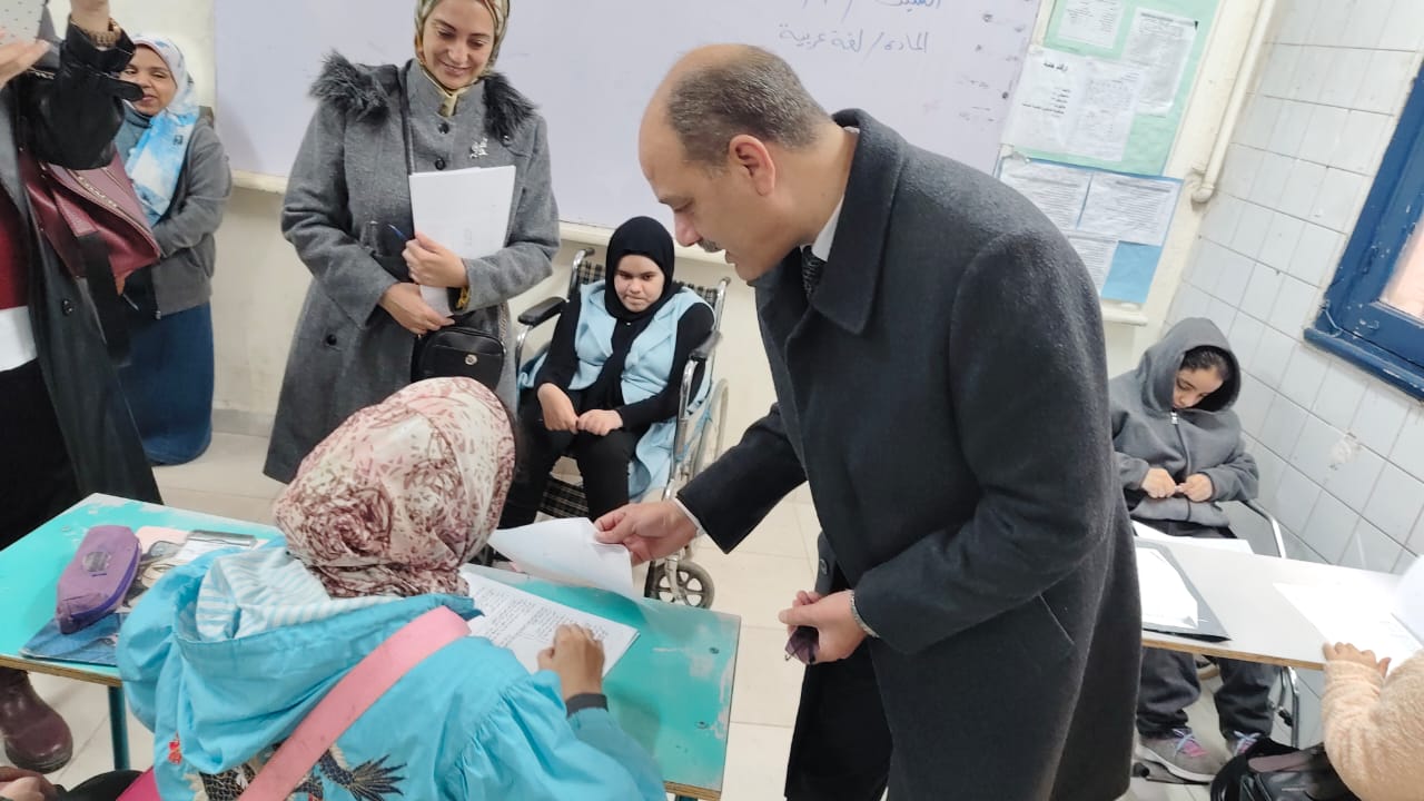 وقام ( أبوزيد ) بمتابعة سير الامتحان بعدد من مدارس المحافظة ، وأكّد على توفير الأثاث اللازم وكافة الأوراق وجميع خامات الامتحانات ، ووجود جدول الامتحانات في مكان واضح وكذلك دليل اللجان ، كما شدّد على الالتزام التام بكافة القرارات الوزارية والكتب الدورية المنظمة للعملية الامتحانية واتخاذ إجراءات قانونية حازمة ، وحظر استخدام الهواتف الذكية للطلاب والمعلمين ، كما وجَّه مديري عموم الإدارات التعليمية التسع بمتابعة الامتحانات بالمدارس وتكليف المراحل التعليمية والمتابعة ومسئولي الإدارة بمتابعة الامتحانات في نطاق كل إدارة .
