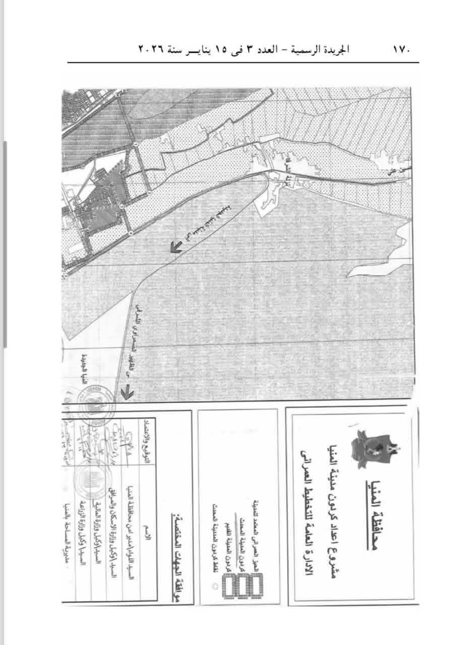 وأوضح محافظ المنيا أن القرار نشر بالجريدة الرسمية – العدد (3) الصادر بتاريخ الخميس 15 يناير 2026، مؤكدًا أن اعتماد التعديل يأتي بما يتوافق مع المخطط الاستراتيجي المعتمد، وبما يحقق الاستخدام الأمثل للأراضي، ويخدم احتياجات التوسع العمراني والخدمي بمدينة المنيا.