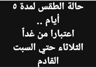 كان ذلك بيان يوضح تفاصيل حالة الطقس اليوم الثلاثاء.