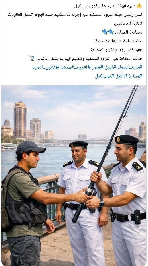 وقد صدر بيان رسمي حول بيان صادر عن جهاز حماية وتنمية البحيرات والثروة السمكية .. وقد افاد المدير التنفيذي بشأن ما أُثير عبر بعض وسائل التواصل الاجتماعي من تداول أخبار مغلوطة وغير صحيحة، تتضمن الادعاء بإعلان رئيس هيئة الثروة السمكية عن إجراءات لتنظيم صيد الهواة، تشمل مصادرة السنارة وفرض غرامة مالية قدرها 32 جنيهًا .. وأخذ تعهد كتابي بعدم تكرار المخالفة ..