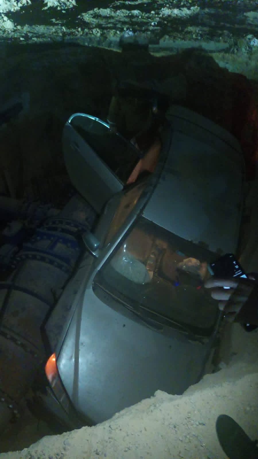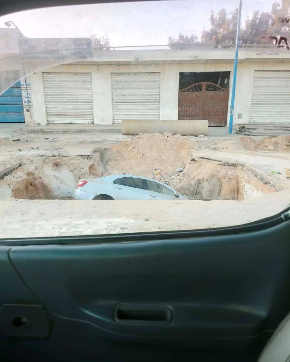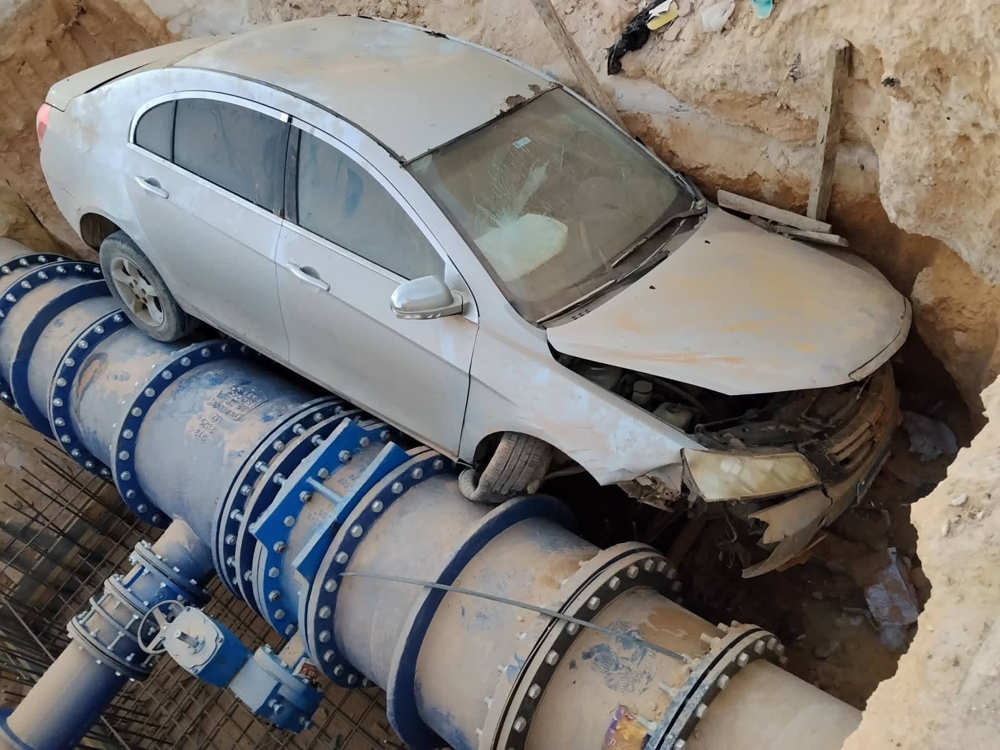 سقطت سيارة ملاكي داخل إحدى حفر أعمال البنية التحتية لتوصيل الصرف الصحى بشارع علم الروم بمدينة مرسي مطروح.