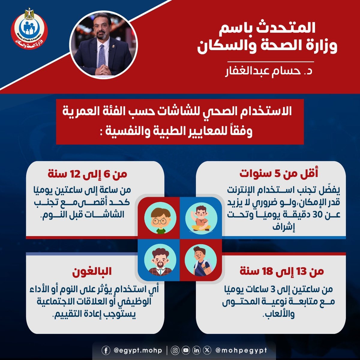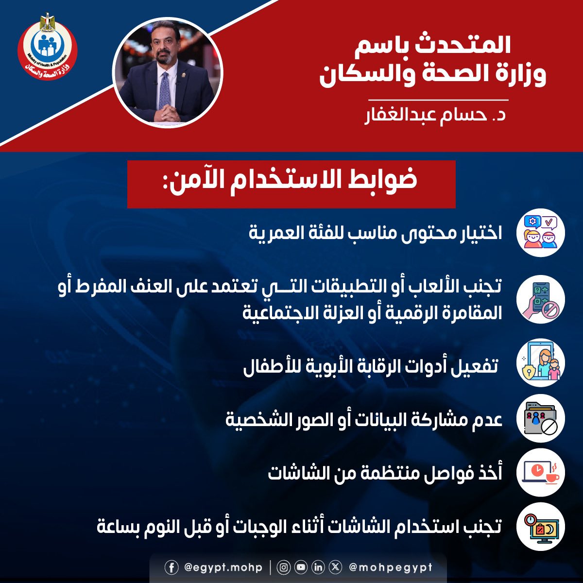 قال الدكتور حسام عبدالغفار ، المتحدث باسم وزارة الصحة والسكان ، إن التكنولوجيا ليست خطر في حد ذاتها، حيث أنها وسيلة مهمة للتعلم والتواصل وتبادل المعرفة لكن المشكلة بتبدأ لما الاستخدام يتحول لإفراط أو سلوك قهري ويأثر على نفسية الإنسان، وجودة حياته، وعلاقاته الاجتماعية.