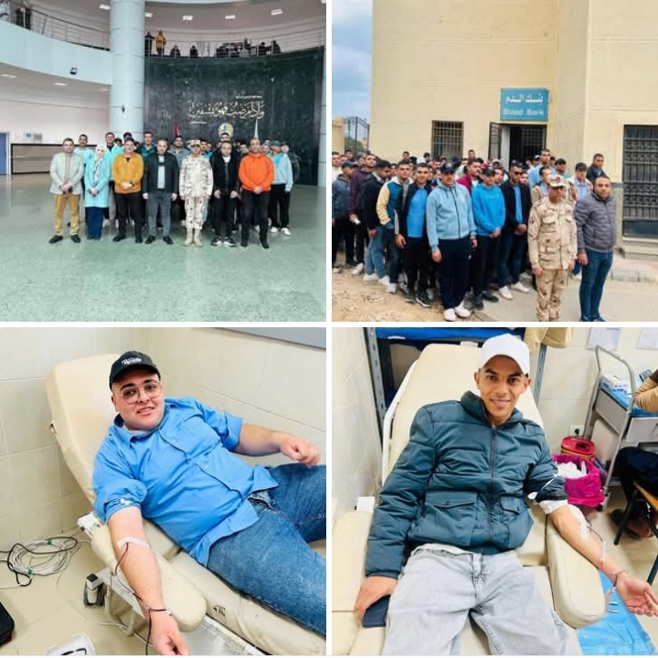 حملة تبرع بالدم بالمستشفى الجامعي لطلاب التربية العسكرية بجامعة كفر الشيخ