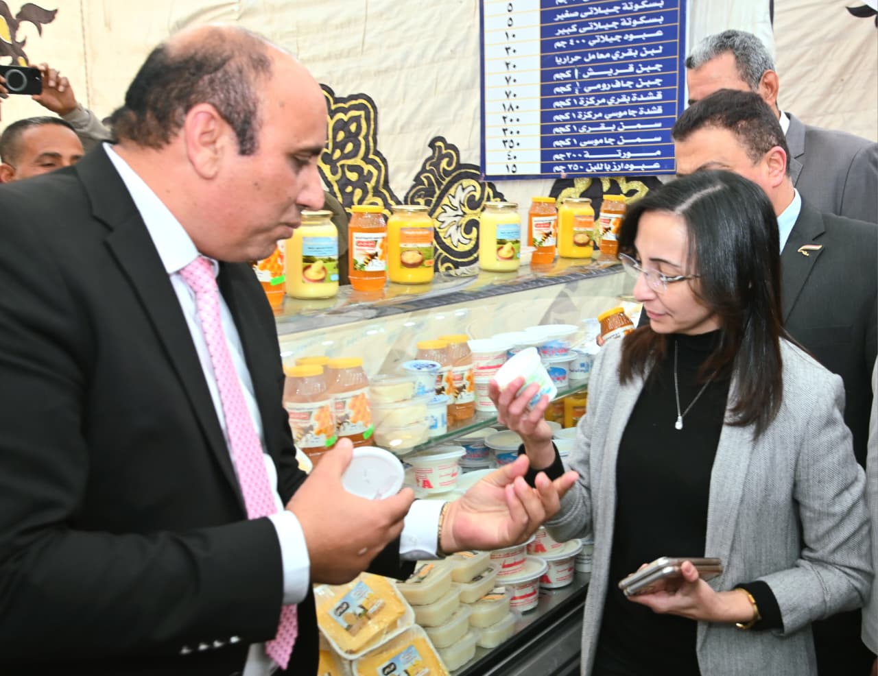 رافق المحافظ خلال افتتاح المعرض اللواء حسن موافي السكرتير العام للمحافظة، و محمد هدية وكيل وزارة التموين بالبحيرة، و محمد الشريف رئيس الغرفة التجارية، وممثلي جهاز مستقبل مصر، و محمد مسعود رئيس الوحدة المحلية لمركز ومدينة دمنهور،واللواءأحمد الحسيني رئيس جهاز حماية المستهلك، وممثلي هيئة سلامة الغذاء، .