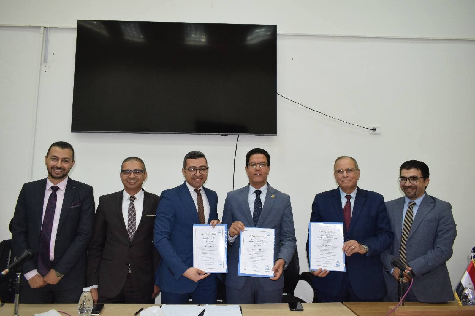 المدن الجامعية بجامعة بنها تحصل علي شهادات النظام المتكامل للجودة والسلامة والصحة المهنية والإدارة البيئية