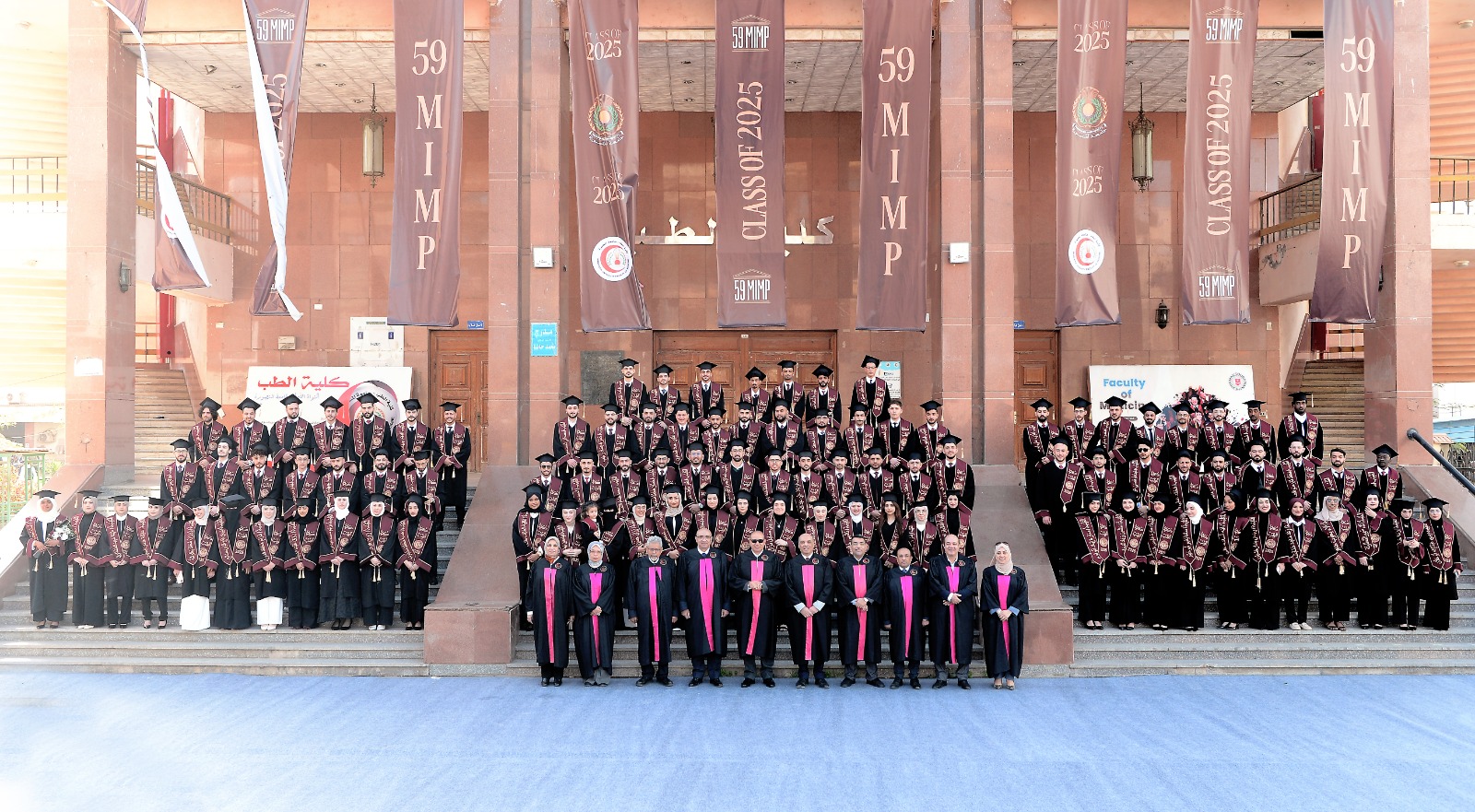 شهد الدكتور شريف خاطر رئيس جامعة المنصورة اليوم مراسم إعلان تخريج والتقاط الصورة الجماعية للطلاب الوافدين من الدفعة «٥٩» البرنامج الأساسي بكلية الطب، والتي تضم ٢٤٤ طالبًا وطالبة من ١٠ جنسيات مختلفة ..