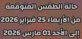تعرف علي حالة الطقس ودرجات الحرارة المتوقعة اليوم الأربعاء الموافق 25 من شهر فبراير 2026م. .. .. والتي تأتي كالتالي: