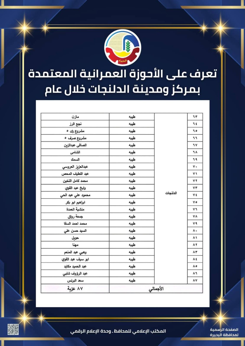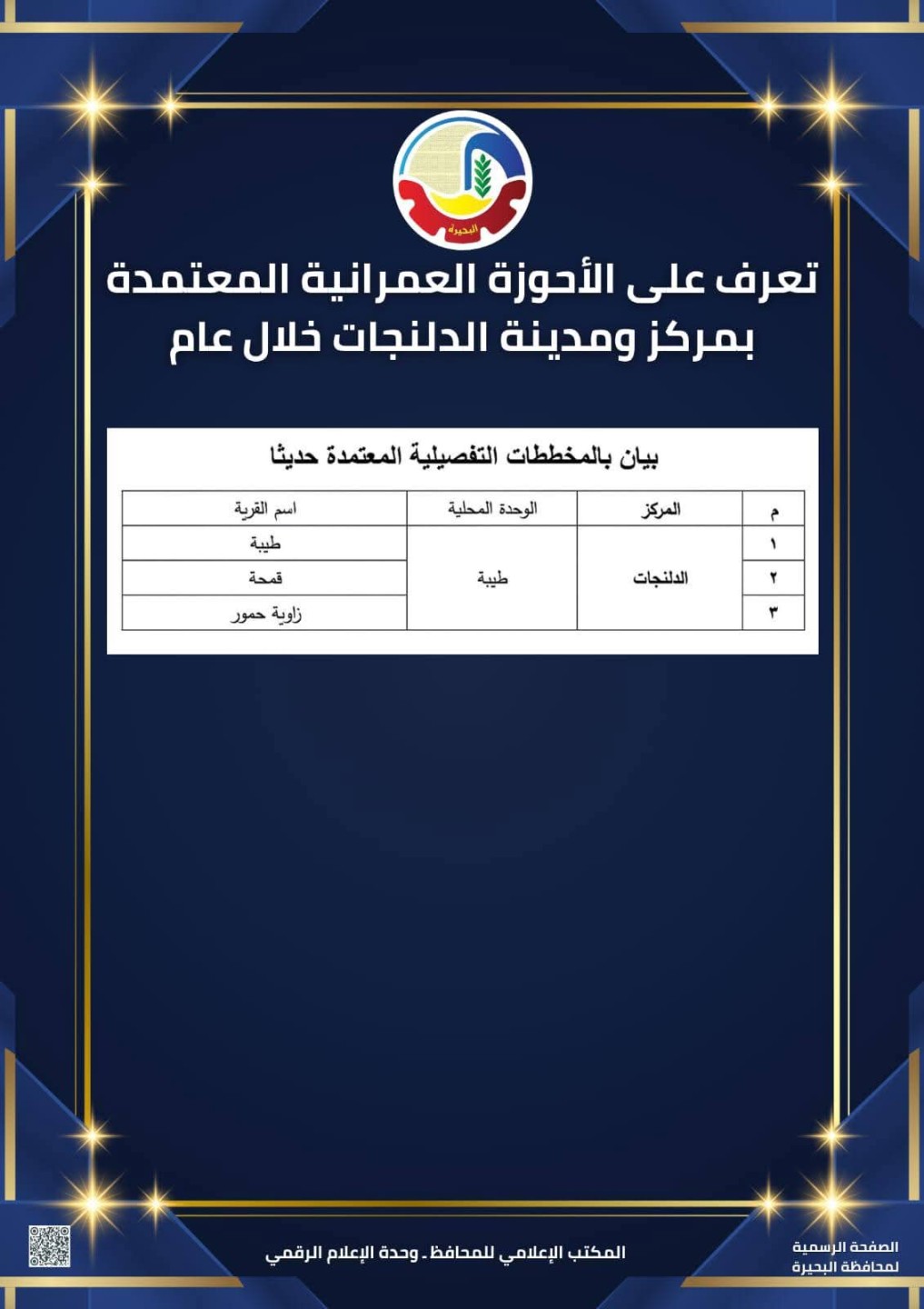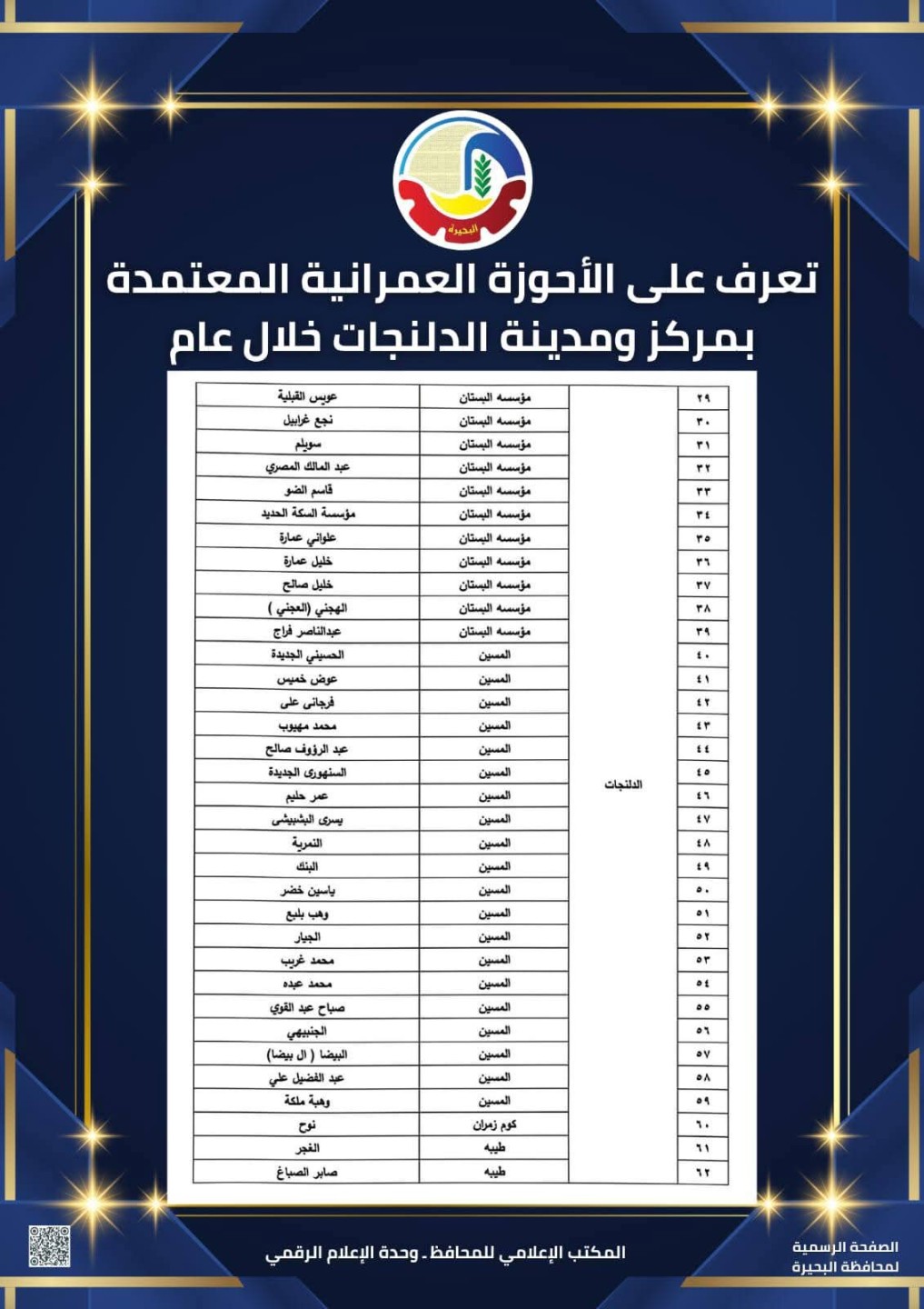 تعرف على الأحوزة العمرانية المعتمدة بمركز ومدينة الدلنجات خلال عام