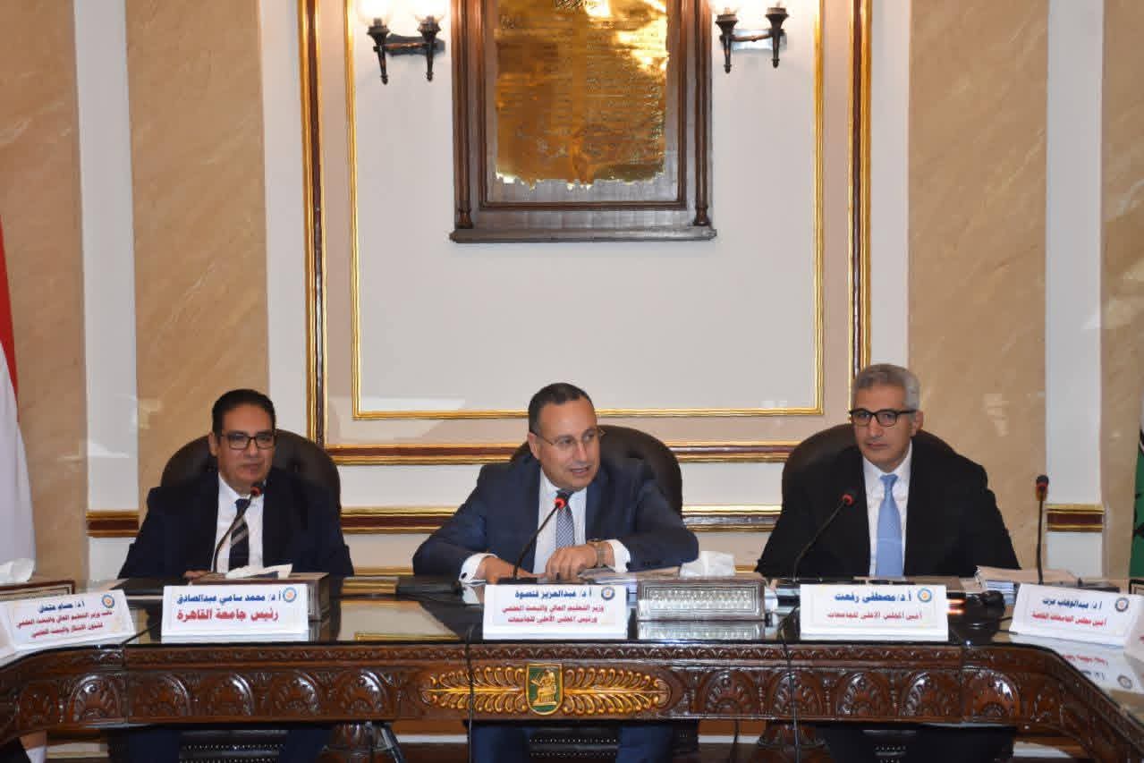 واستهل المجلس اجتماعه بتقديم خالص التهنئة للدكتور عبدالعزيز قنصوة بمناسبة ثقة القيادة السياسية وتوليه منصب وزير التعليم العالي والبحث العلمي، مؤكدين دعمهم الكامل لاستكمال جهود تطوير منظومة التعليم العالي والبحث العلمي وتعزيز تنافسية الجامعات المصرية. كما وجّه المجلس الشكر والتقدير للدكتور أيمن عاشور وزير التعليم العالي والبحث العلمي السابق، تقديرًا لما بذله من جهود مثمرة أسهمت في الارتقاء بمنظومة التعليم العالي والبحث العلمي خلال الفترة الماضية.