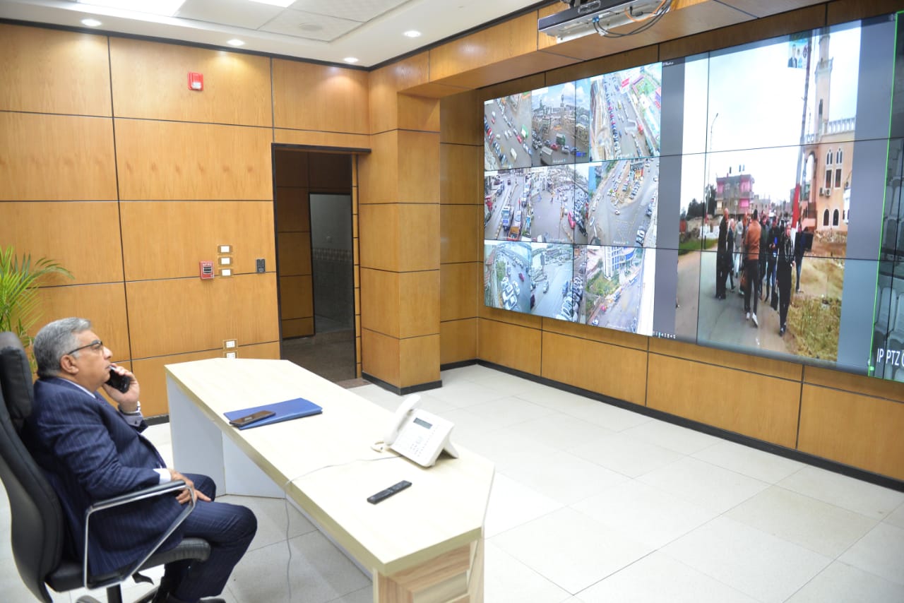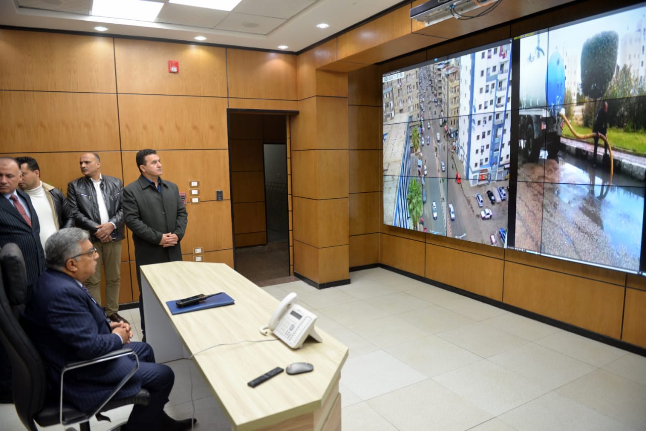 متابعة محافظ الدقهلية من مركز سيطرة الشبكة الوطنية جهود كسح الأمطار والنظافة والإشغالات والمشروعات والخدمات بالمراكز والمدن والأحياء