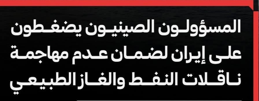 هناك أنباء عن انه قد كشفت مصادر مطلعة لوكالات اخبارية ومنافذ إعلامية متنوعة .. مفادها أن مسؤولين صينيين يضغطون بشكل كبير على طهران لضمان عدم اتخاذ أي إجراءات عسكرية أو تصعيدية قد تعطل صادرات الغاز الطبيعي المسال من قطر، في ظل التوترات الإقليمية المتفاقمة والتي أدت بالفعل إلى تعطيل جزئي في الملاحة عبر مضيق هرمز.