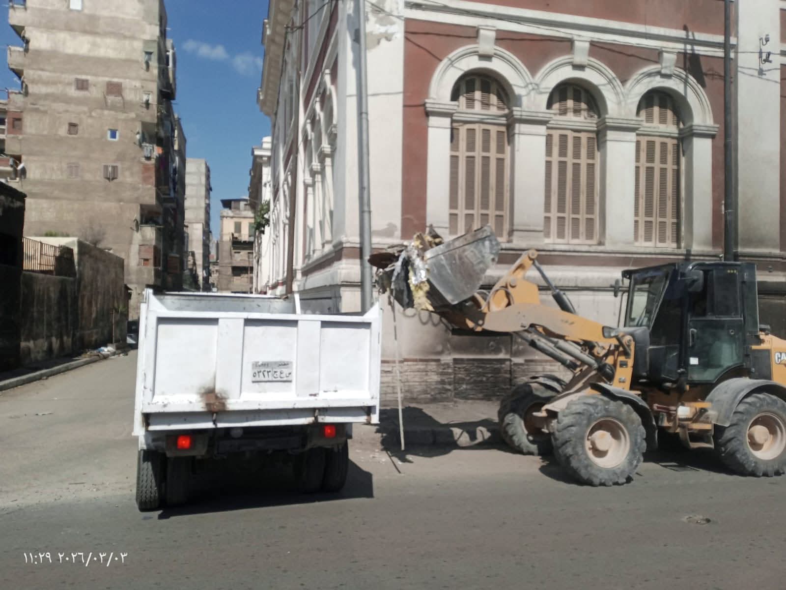 رئيس حي غرب الإسكندرية تتابع اعمال تجريف ورفع ٢٠ طن اتربة ورديم من شارع ابن طولون
