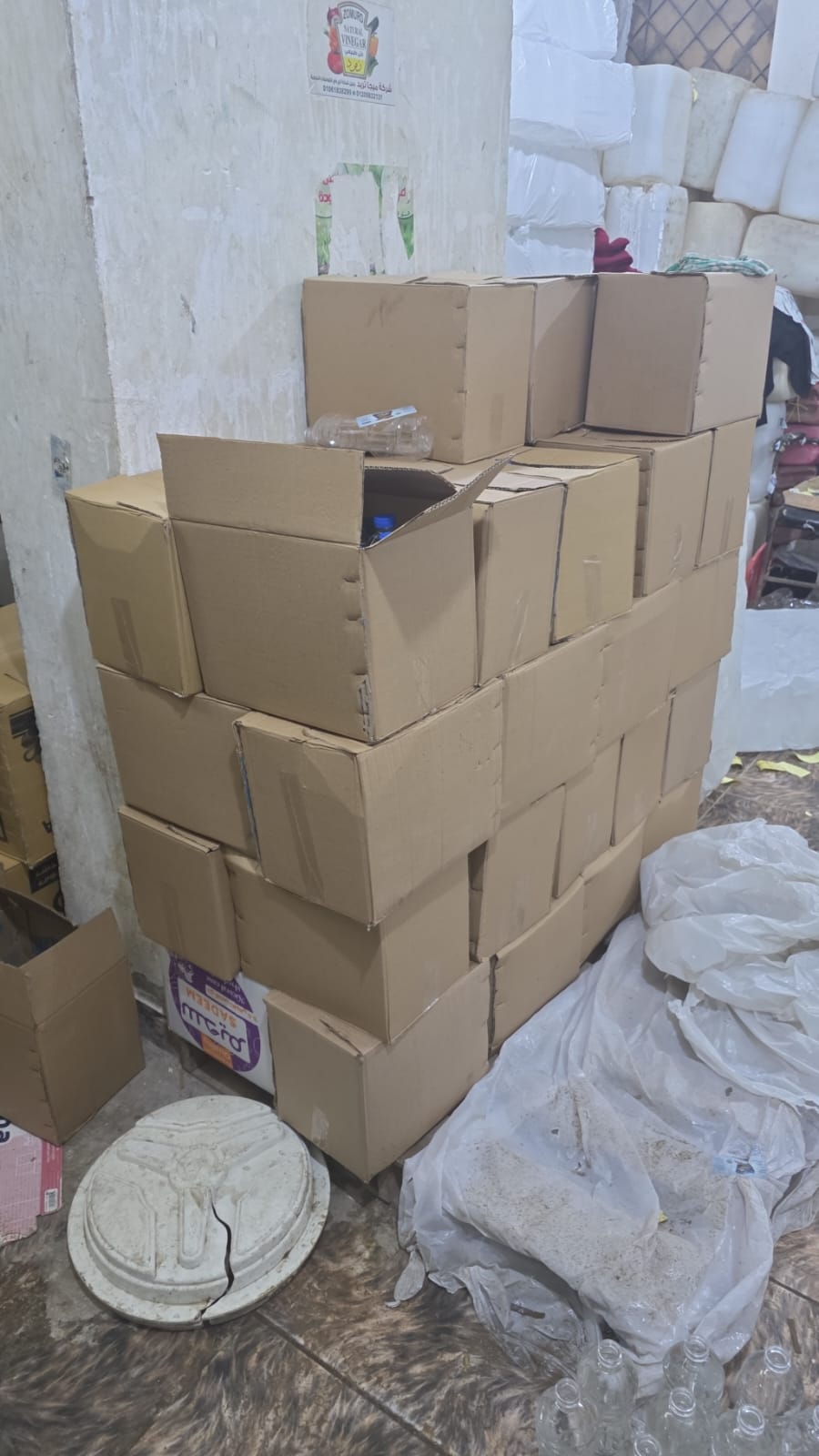 و قد تم ضبط و تحريز الأصناف والكميات الأتية: كمية قدرها ٣ طن خل طعام معبأ داخل تنكات بدون بيانات تجارية تفيد تاريخ الانتاج والصلاحية أو مستندات أو فواتير دالة على حيازتها عدد ٦٣٠٠ زجاجة خل طعام سعة واحد لتر مدون عليها علامه تجارية وهمية ومقلدة ومغشوشة وعدد ٦١٠٠ زجاجة خل طعام سعة واحد لتر خل طعام وعدد ٢٩ جركن خل مركز ٩٩٪ سعة ٣٠ كجم بدون مستندات أو فواتير داله على مصدرها أو حيازتها وعدد ١١٤٠٠ زجاجة فارغة سعة لتر وكذلك عدد ٢٠٠٠٠ ستيكر مدون عليها علامة تجارية وهمية ومقلدة ومغشوشة .