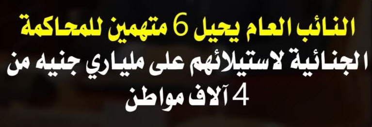أصدر المستشار محمد شوقي عياد النائب العام قراراً عاجلاً بإحالة ستة متهمين إلى المحاكمة الجنائية، لاتهامهم بتلقي مبالغ مالية ضخمة من الجمهور بقصد توظيفها دون الحصول على التراخيص القانونية اللازمة من الجهات المختصة.