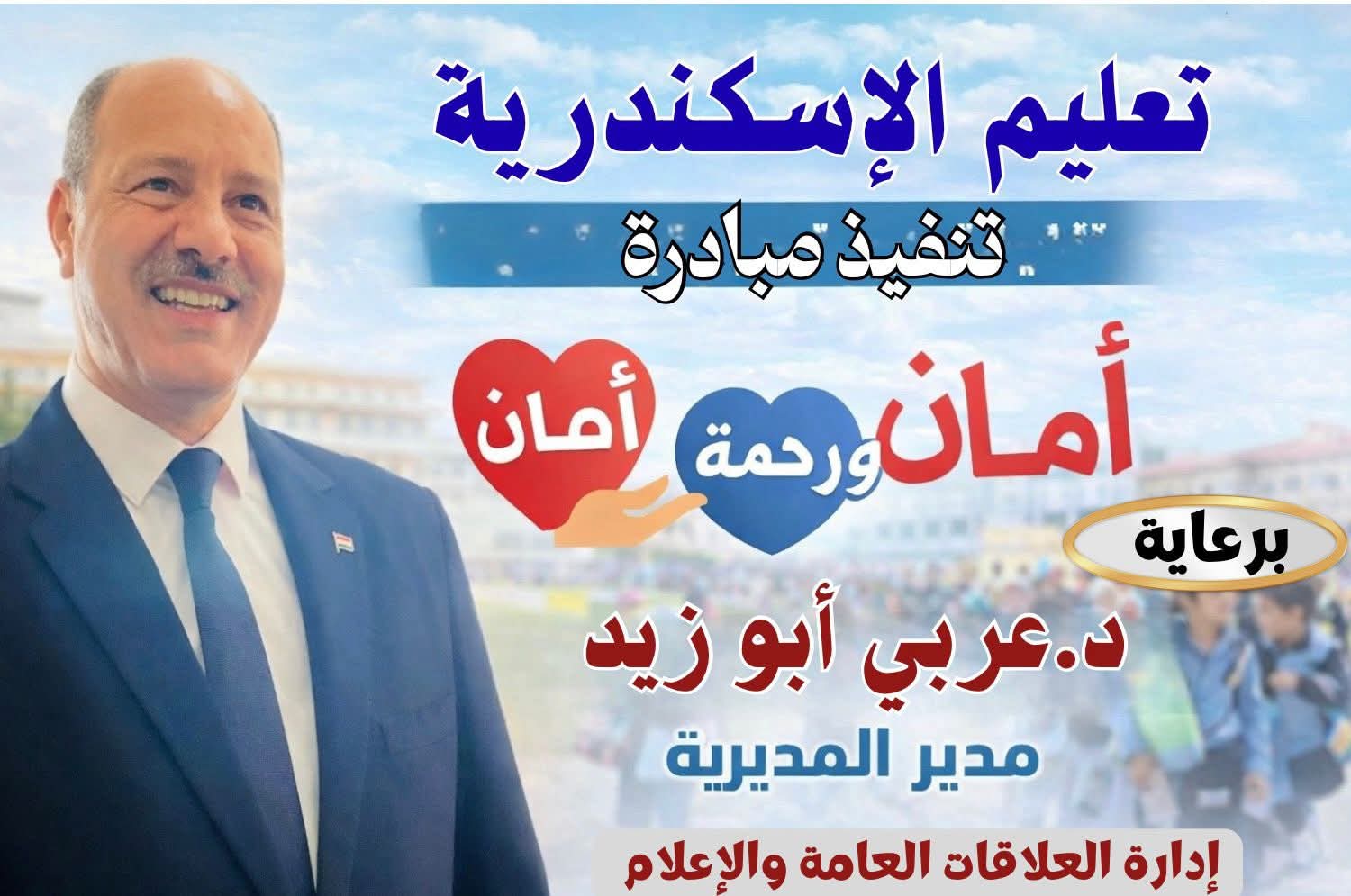 جاء ذلك في إطار الدور المجتمعي لمديرية التربية والتعليم بالإسكندرية بقيادة الدكتور عربي أبوزيد مدير المديرية وتنفيذًا لتوجيهات الدولة المصرية بدعم الأسر الأولى بالرعاية وتعزيز قيم التكافل والتضامن المجتمعي، أعلن الدكتور عربي أبوزيد مدير مديرية التربية والتعليم بالإسكندرية انطلاق مبادرة "أمان ورحمة" لتقديم الدعم الغذائي للأسر الأكثر احتياجًا.