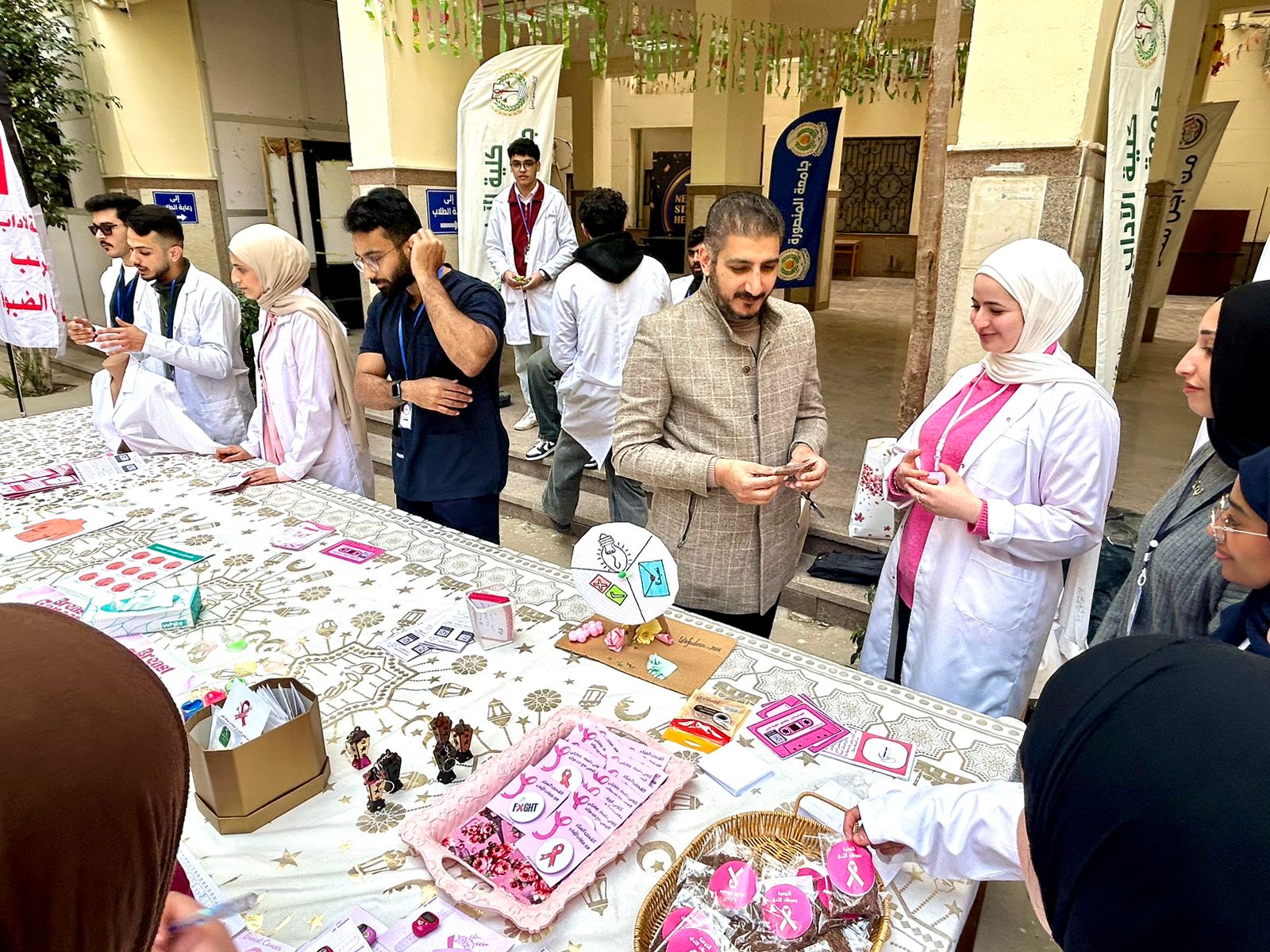 كما تضمنت الحملة عددًا من الفعاليات التوعوية، من بينها تقديم معلومات مبسطة حول سرطان الثدي وأهمية الاكتشاف المبكر، وتوعية الطلاب بعوامل الخطورة وطرق الوقاية، إلى جانب توزيع مواد تثقيفية صحية، والإجابة عن استفسارات الطلاب، وتقديم الإرشادات الصحية اللازمة، بما يسهم في تعزيز الوعي الصحي داخل المجتمع الجامعي.